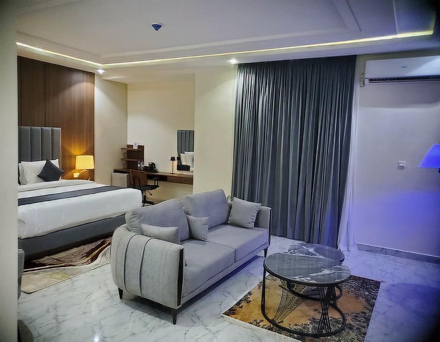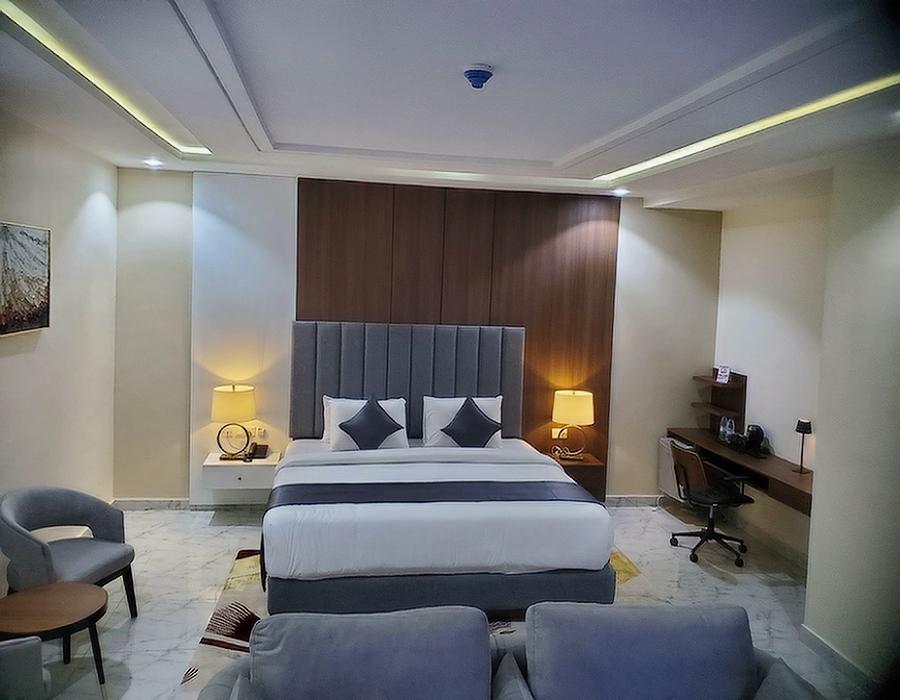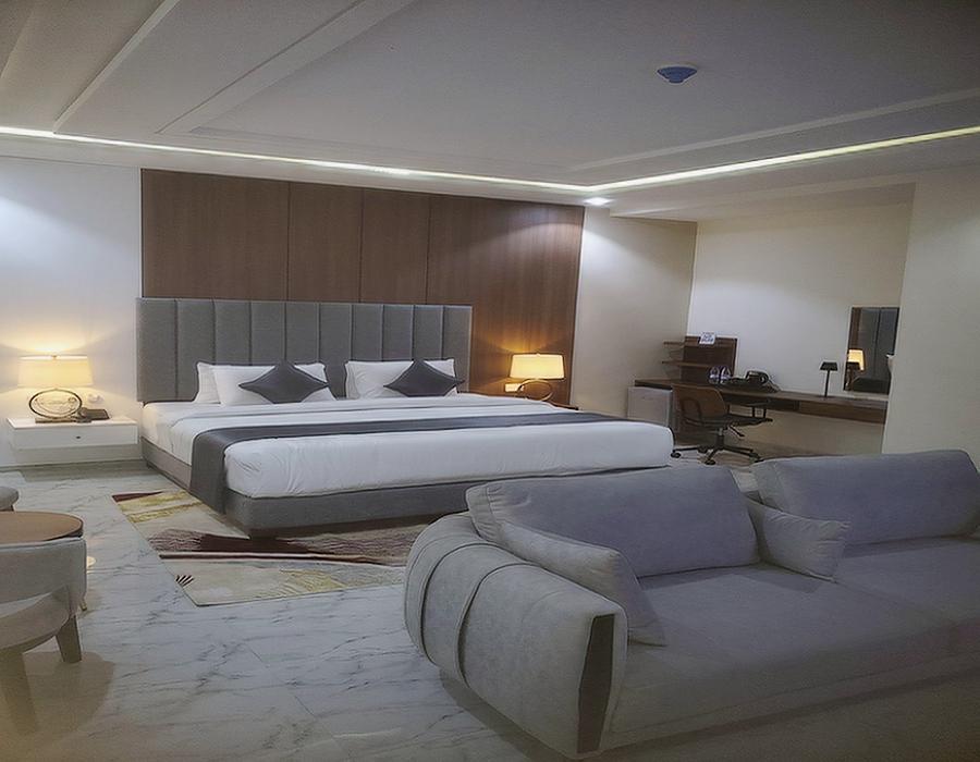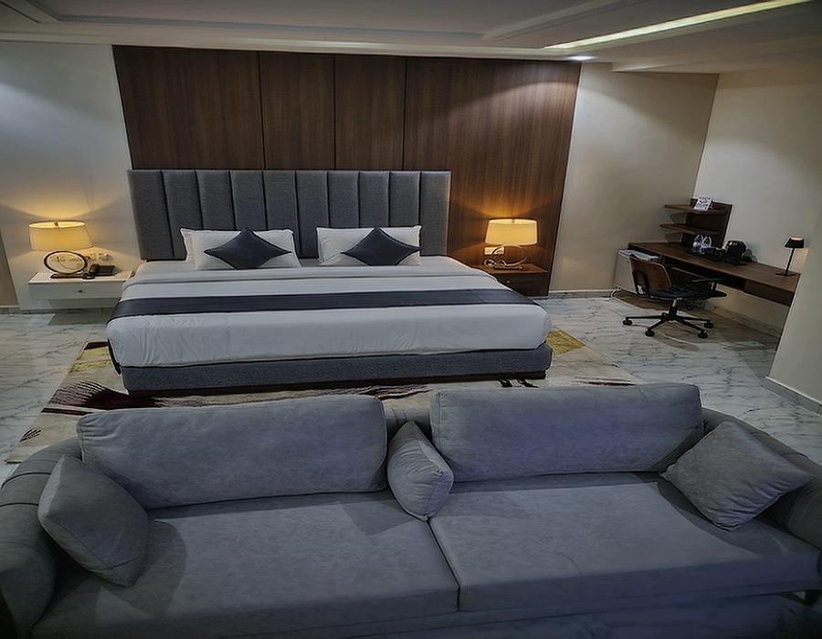The Deluxe Room offers an elevated hotel experience, combining spaciousness, tasteful décor, and upgraded amenities. Featuring a king-size bed with premium bedding, a cozy seating area, and large windows that invite in natural light, it is the perfect space to unwind in style. The elegant bathroom comes with premium toiletries, soft towels, and a walk-in shower. Whether you’re traveling for business or leisure, the Deluxe Room offers an indulgent balance between elegance and comfort, ensuring a delightful stay.